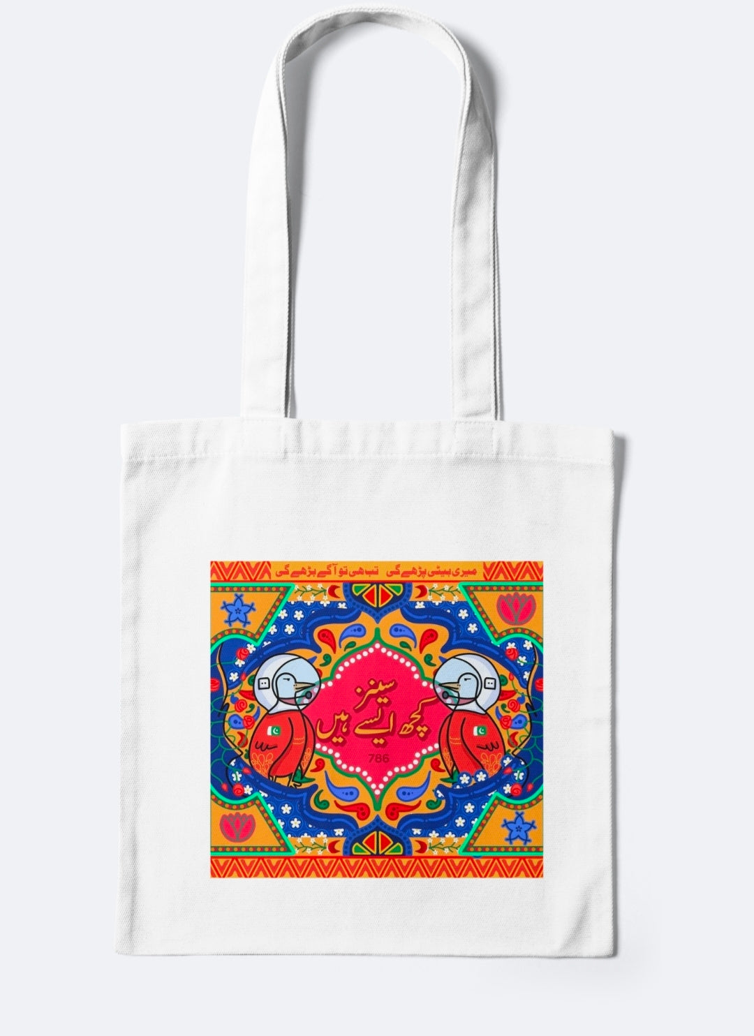 Celebrate tradition with our beautifully crafted Punjabi Cultural Tote Bag – a perfect blend of style and heritage. This tote bag is designed to reflect the vibrant colors, patterns, and artistic richness of Punjabi culture. Featuring traditional motifs such as phulkari-inspired embroidery, truck art elements, and cultural icons like dhol, jutti, and the majestic peacock, this bag tells a story of Punjab's festive spirit and deep-rooted traditions.